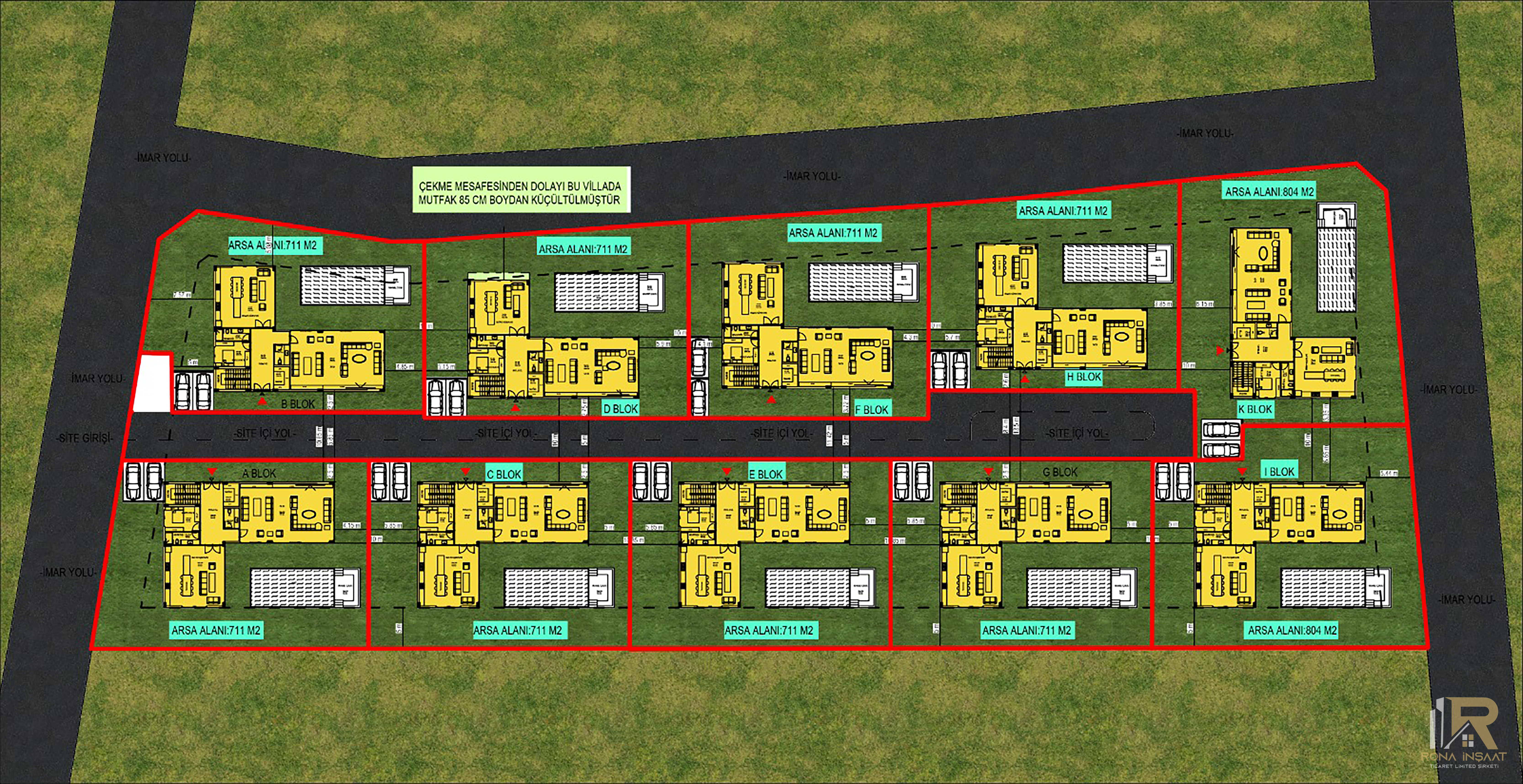 711 m² – 804 m² arasında değişen geniş arsa payları, müstakil yaşam hissini en üst seviyeye taşır.